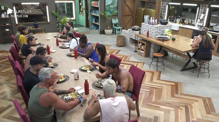 Nossos peões tiveram mais um almoço tranquilo na sede de A Fazenda 12 . Entre as garfadas, os participantes conversaram e elogiaram a refeição. .