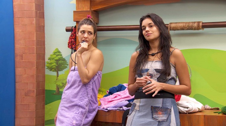 Alane e Yasmin comentam que também trocam de roupa no cômodo, e Matteus pergunta: "E se cai a toalha?". "Caiu", responde Yasmin. Alane, então, conta de uma vez que dormiu pelada no reality. "Uma vez eu fui dormir, só botei o edredom, abri a toalha e dormi". "Sério?", pergunta Leidy, surpresa.