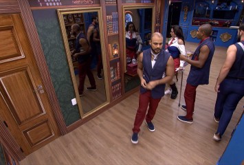 Davi, do BBB 24, vê brother vestido para a festa e comenta: 'Tá de batom, é?' Os brothers estã...